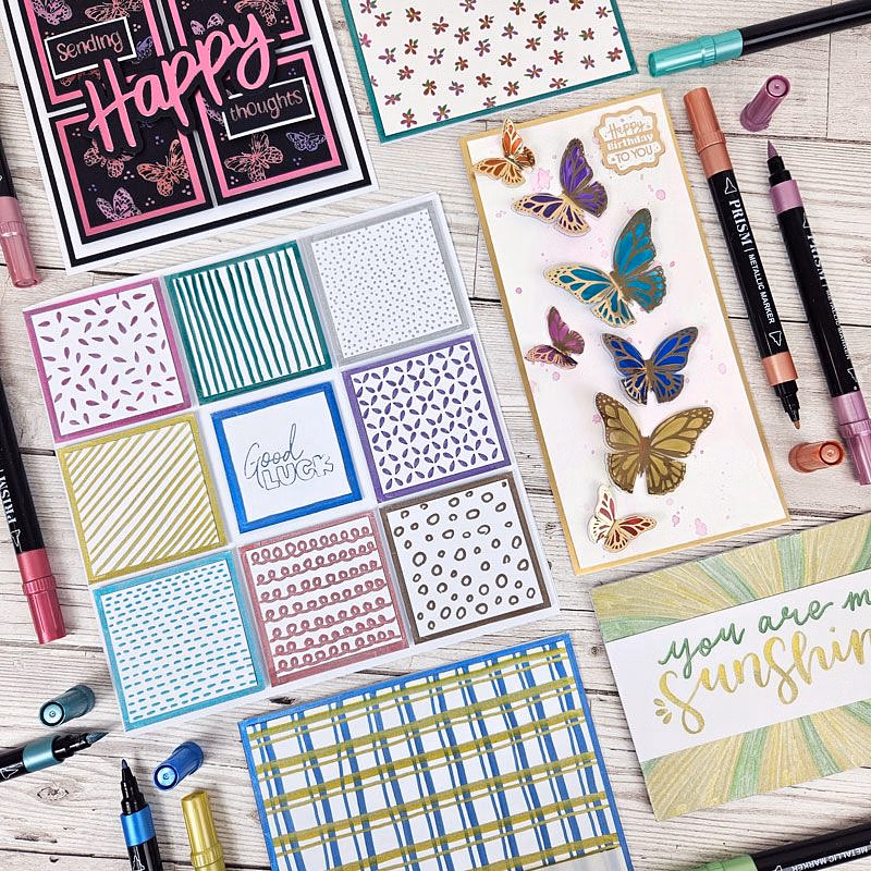 To get the most from your Prism Metallic Markers, the 68-page Prism Crafting Handbook Volume 8 - Metallic Markers will give you lots of information, ideas and inspiration. This handbook will show how the markers look on white, kraft and black cardstock along with going through features of the markers. It explains what materials work with the markers and the benefits of each one. Later in the handbook, there is inspiration for each material type, with step-by-step instructions, ensuring you can fully explore a full range of materials. Along with the markers, the book explains what other products would be useful in your crafting journey and how each one can be used. And don’t forget the top tips that our creative team have put together to get the most from the markers.