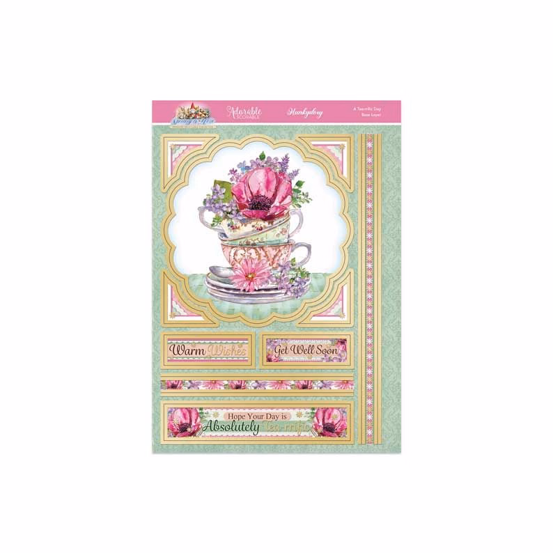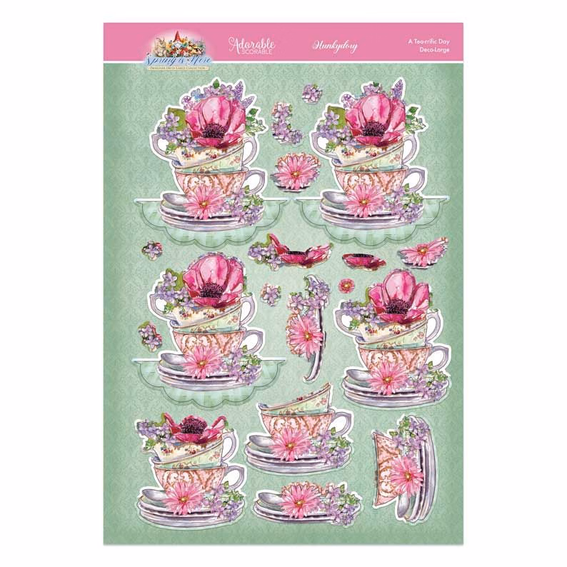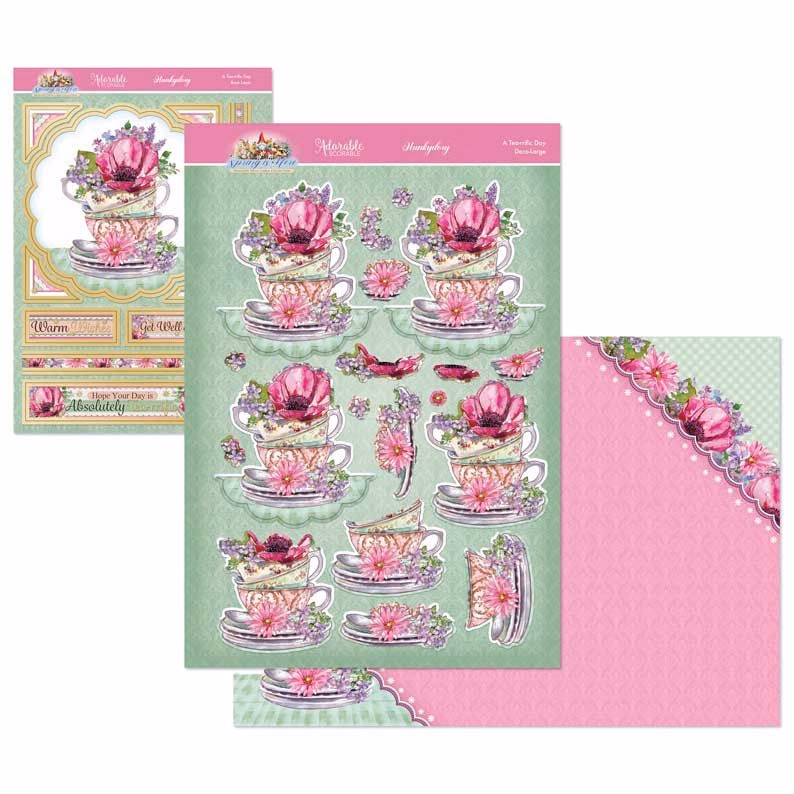 This Deco-Large set includes 1 A4 deco-large elements sheet, 1 A5 base layer & 1 A4 printed cardstock sheet; enough to make at least 1 card, although savvy crafters could easily stretch this set to create 2 or more cards. Imagery features teacups adorned with beuatiful blooms.