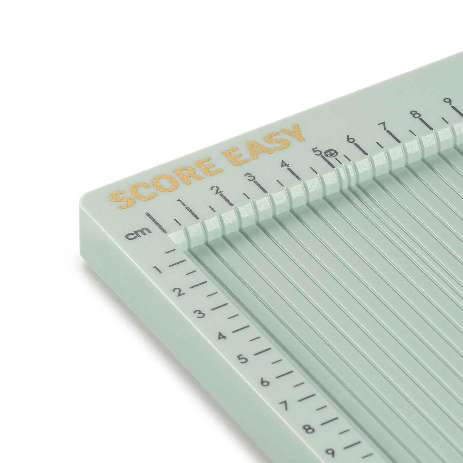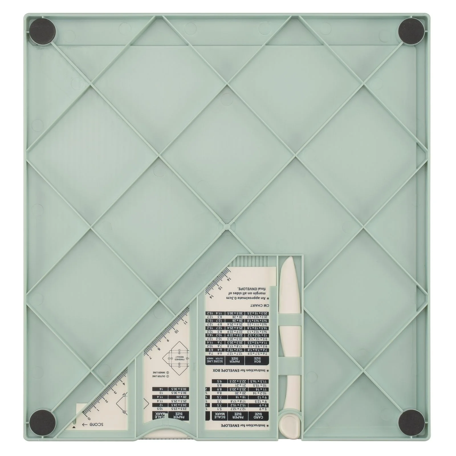 Use the scoring board for scrapbooking and journaling. The 12 x 12" work surface features clear size markings in centimetres. The two open edges allow you to work effortlessly with various paper sizes, from scrapbook format to A4. The included triangular ruler and bone folder make it even easier to create gift boxes, greeting cards, and other papercrafts. After use, you can conveniently store the accessories at the back of the board.
